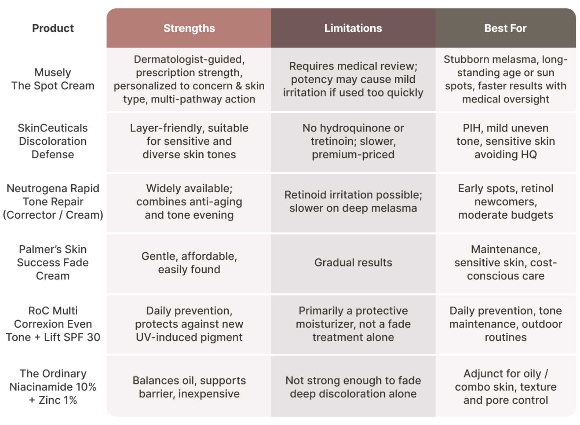 Set expectations early. Even highly impactful actives need consistency. Over the counter products commonly take 6 to 12 weeks to show visible change. Prescription formulas may act faster, though they can require a deliberate ramp to reduce skin irritation. Daily sunscreen matters as much as the treatment itself. Without it, you are treating a moving target and inviting rebound. If you want dermatologist-guided strength with a telehealth experience, Musely’s Spot Cream is a prescription option that pairs medical review with customized actives for your Skin Concern.