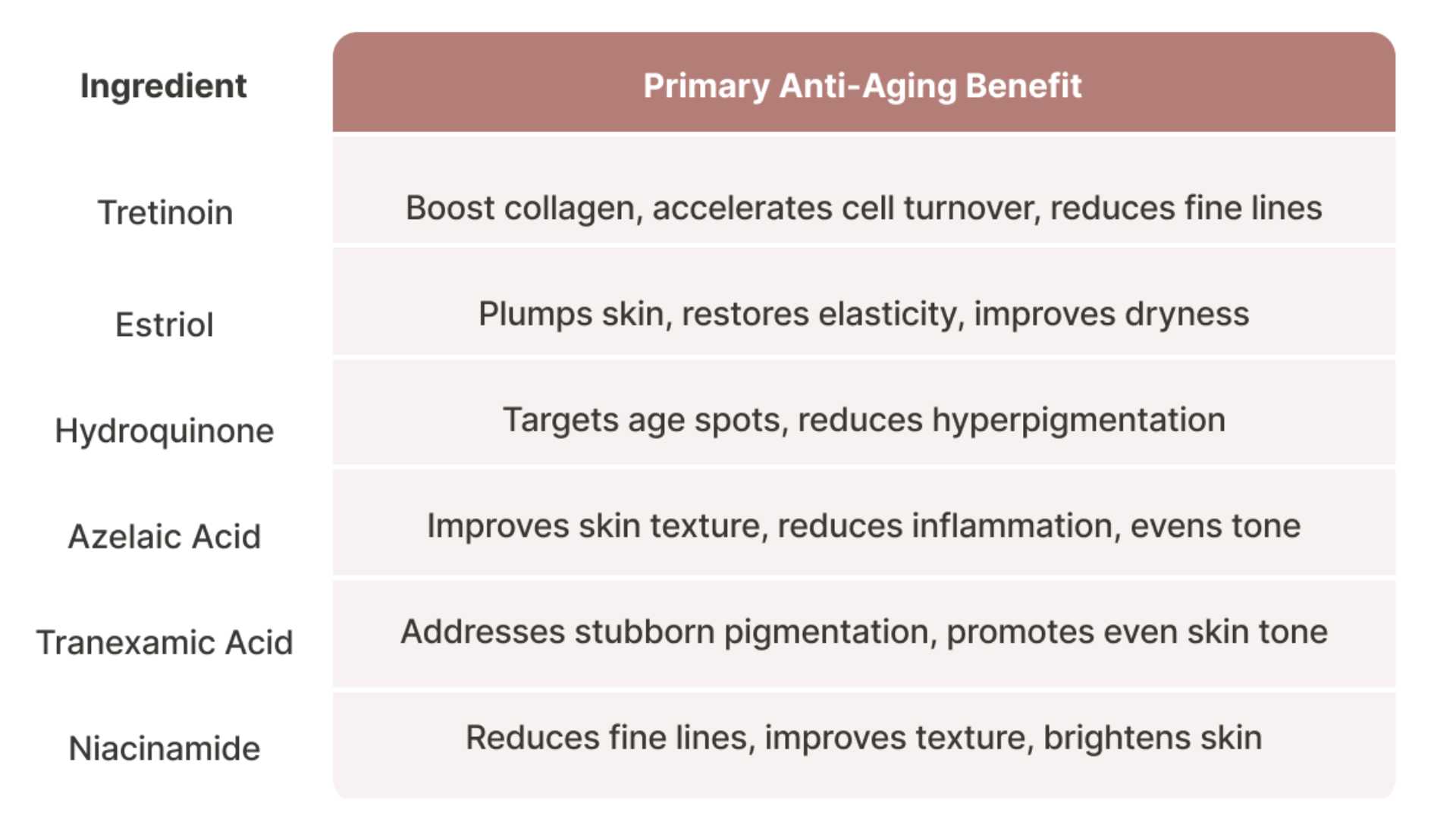 Natural hyaluronic acid production decreases with age, leading to dryness and a loss of plumpness. Many prescription formulations include this vital ingredient, or components that encourage its production, to maintain optimal skin hydration and plumpness.